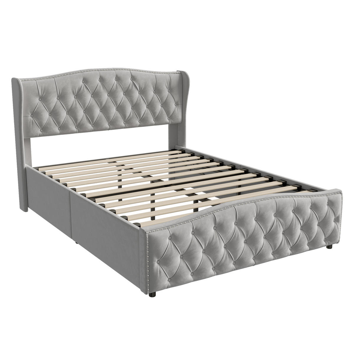 POLSTERBETT 160x200 cm, Grau, Lattenrost, Stauraum, Samt, Doppelbett