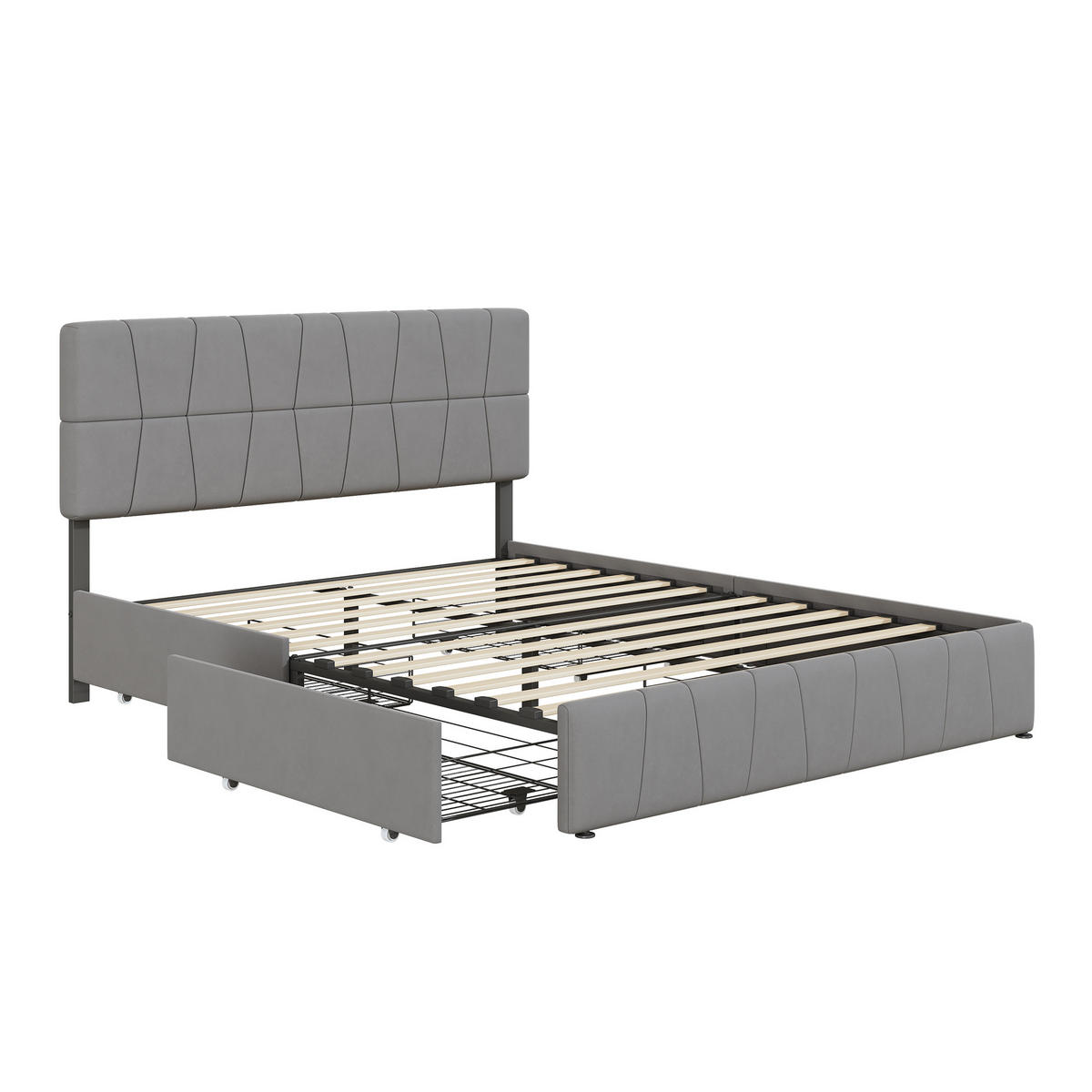Dieses Polsterbett verfügt über 4 Schubladen, um Ihnen viel Stauraum zu bieten, und Rollen unter den Schubladen für einen einfachen Zugang, und das Samt material ist weich und hautfreundlich.Details:
