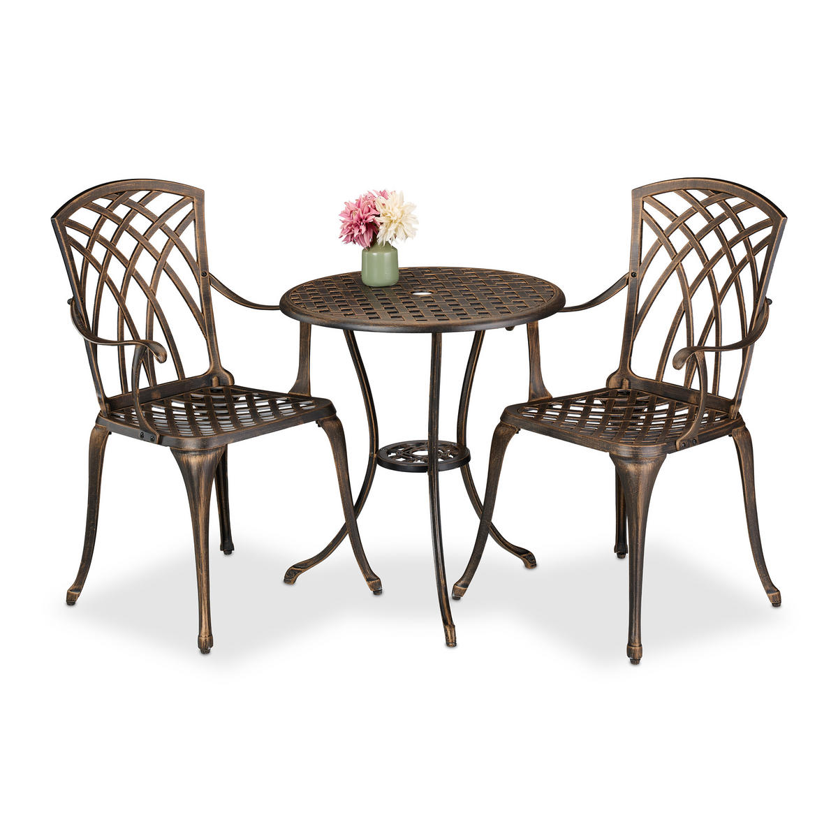 3-TLG.GARTENMÖBEL-SET - Bronzefarben, Metall - RelaxdaysRelaxdays