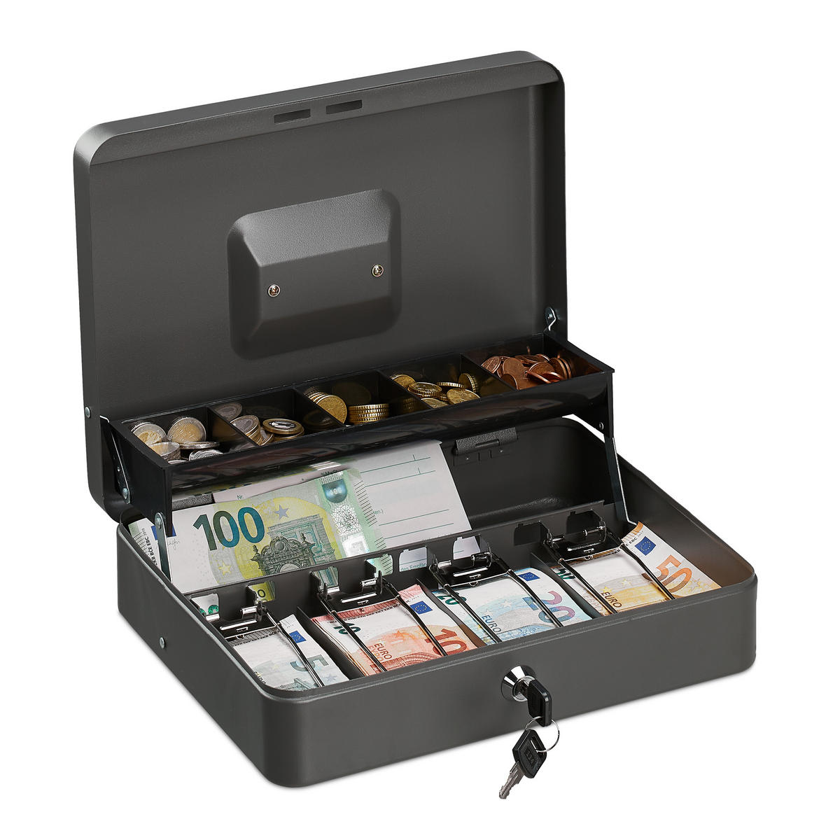 GELDKASSETTE - Grau, Kunststoff/Metall (30.5/8.5/24.5cm) - Relaxdays