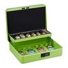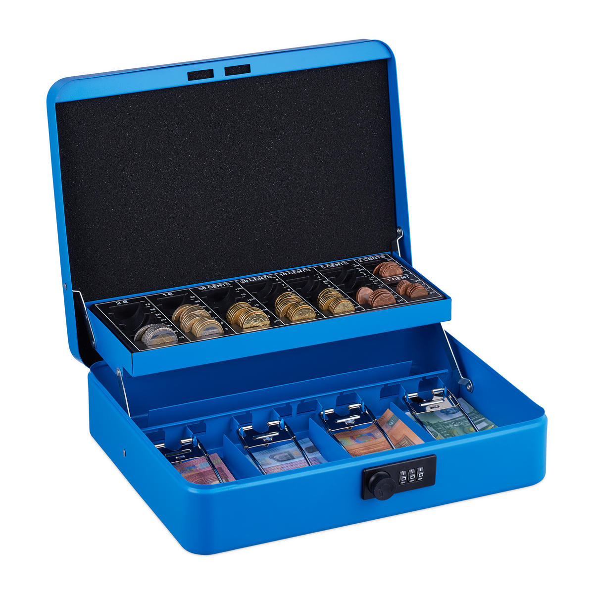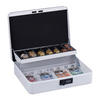Wenn Du Bargeld sicher verstauen willst, ist diese Geldzählkassette die richtige Wahl. Die Handkasse eignet sich sowohl für den Gebrauch zu Hause als auch für den Einsatz auf Flohmärkten, Jahrmärkten und anderen Veranstaltungen. In das herausnehmbare Münzbrett sortierst Du Hartgeld nach Wert ein, sodass Du stets den Überblick behältst. Die Sparkasse wird mit einer 3-stelligen Zahlenkombination gesichert und lässt sich am Tragegriff einfach transportieren.