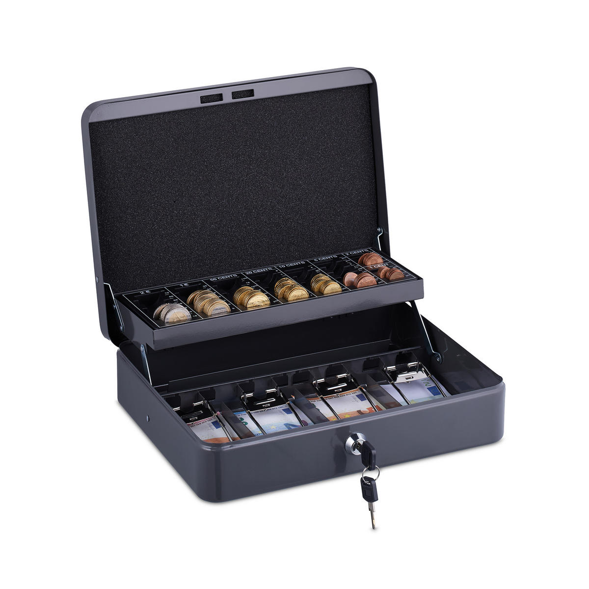 - Besonderheiten: Geld aufbewahrenMit 2 SchlüsselnFür Vereine & Co.Münzzählbrett4 Scheinfächer