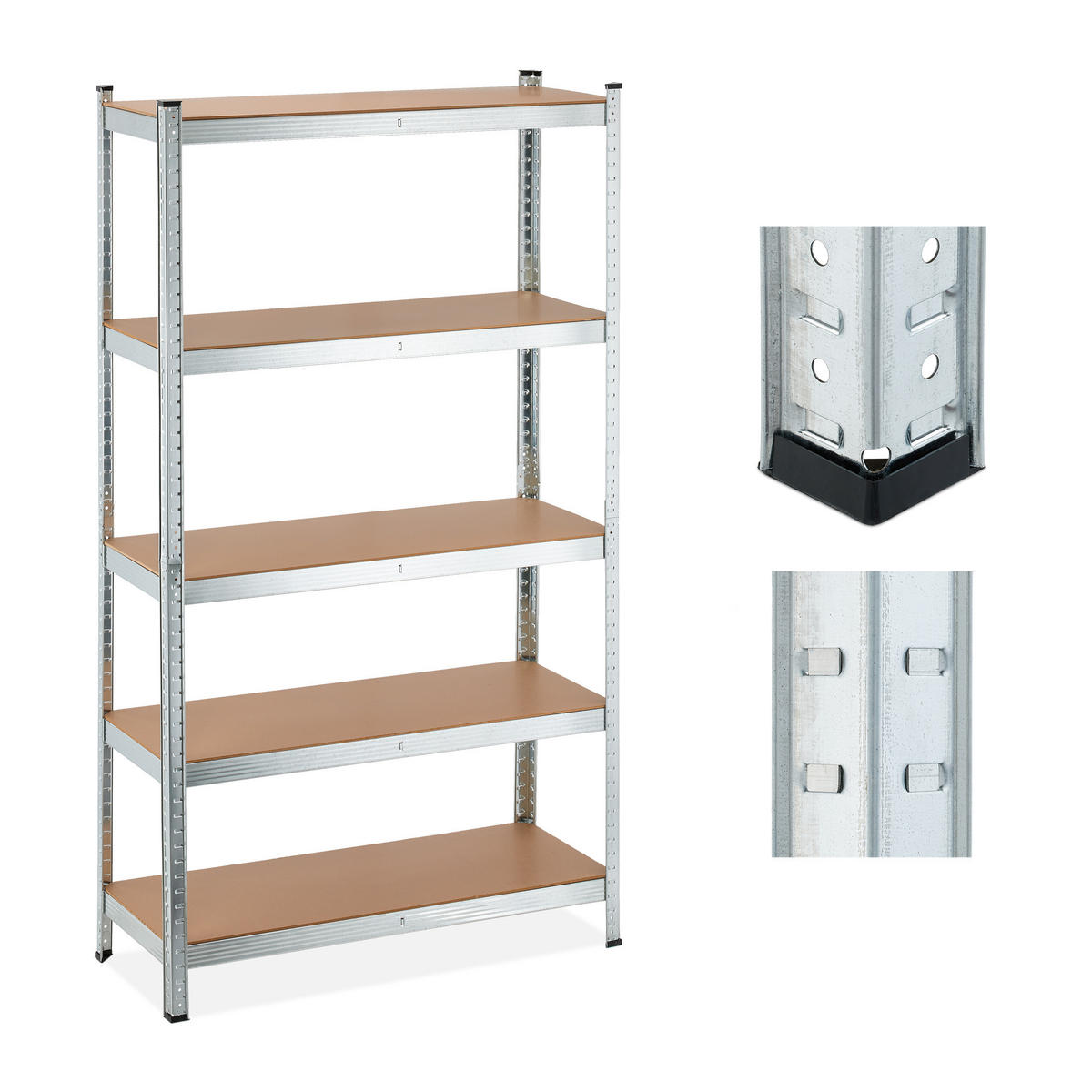 Das silberne Schwerlastregal bietet viel Platz, um Ordnung zu schaffen. Als Keller- oder Werkstattregal, im Hauswirtschaftsraum, in der Garage oder im Gartenhäuschen bietet es unverzichtbaren Stauraum für schwere Gegenstände und mehr. Lagere Reifen, Maschinen, Werkzeug oder Lebensmittelvorräte platzsparend. Baue das robuste Lagerregal aus verzinktem Stahl nach Deinen Wünschen auf, da die Höhe der 5 Böden variabel ist. Bei Bedarf kannst Du das Standregal teilen und die 2 Regale einzeln verwenden.