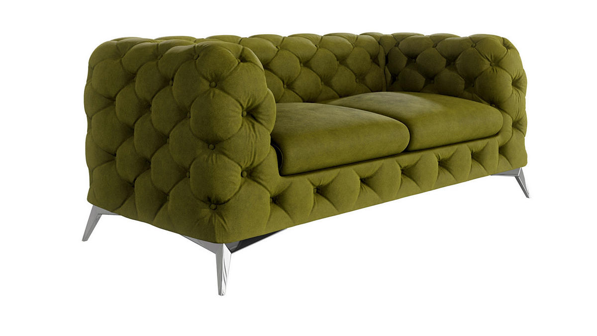 Das 2-Sitzer Chesterfield Sofa mit Silber Metallfüßen ist eine elegante Ergänzung für Ihr Wohnzimmer. Hergestellt aus hochwertigem Samtstoff bietet dieses Sofa nicht nur einen Hauch von Luxus, sondern auch hohen Komfort. Die Sitzkissen sind mit hochwertiger Schaumstoffpolsterung und Federn gefüllt, was ein angenehmes und unterstützendes Sitzerlebnis garantiert. Das klassische Chesterfield-Design mit Knopfverzierung an der Vorderseite und Rückseite verleiht diesem Sofa eine zeitlose Eleganz. Die Silber Metallfüße in glänzendem Silber bieten nicht nur Stabilität, sondern auch eine luxuriöse Ästhetik. Diese Füße heben das Sofa elegant vom Boden ab und lassen es leicht im Raum schweben. Das hochwertige Samtstoffgewebe ist nicht nur angenehm anzufassen, sondern auch langlebig und widerstandsfähig gegen Flecken und Beschädigungen. Dieses Sofa bietet Platz für zwei Personen und ist ideal für gemütliche Abende oder Gespräche in kleinerer Runde. Ein Blickfang in jedem Wohnzimmer.