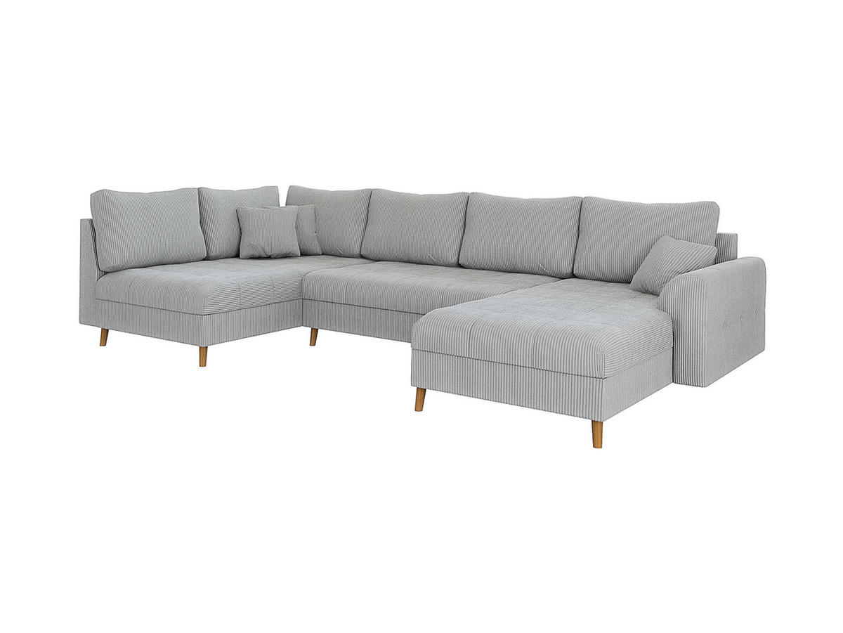 WOHNLANDSCHAFT Alma Hellgrau Cord - Ottomane rechts - Hellgrau/Braun, Holz/Textil (310/81/161cm) - S-Style Möbel