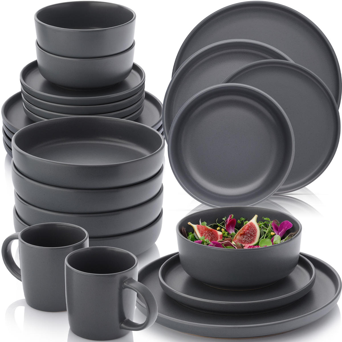 Die natürliche Textur und die handgefertigte Qualität des Steinguts verleihen diesem Set eine rustikale Eleganz, die jeden Tisch aufwertet. Ob für den täglichen Gebrauch oder besondere Anlässe, dieses Tafelservice vereint zeitloses Design mit moderner Funktionalität und ist ein unverzichtbares Element für jede Küche, das Ihnen lange Freude bereiten wird.