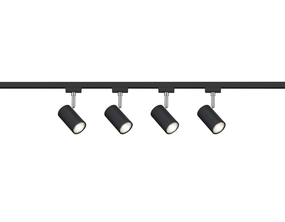 LED-Schienensystem Komplett Set Mit diesem modernen und zeitlosen Schienensystem aus Metall in der Farbe Schwarz matt kombiniert mit Spots in schwarz matt bietet sich die perfekte Lichtlösung für Ihr Haus oder Ihre Wohnung. Die Spots können frei nach eigenem Wunsch positioniert werden, um Licht in die dunkelste Ecke zu bringen.Im Lieferumgang enthalten:• 2x 100cm Schiene titan• 4x dreh- und schwenkbare Spots in nickel-matt die ganz nach Kundenwunsch mit GU10 Leuchmittel (exklusive) bestückt werden können (tauschbares Leuchtmittel)• Endkappen und Schienenverbinder• Die dazu passende Einspeisung kann in der Mitte oder am Anfang/Ende der Schiene angebracht werden kann.Das System ist desweiteren mit unseren Produkten der Marke „Duoline“ jederzeit erweiterbar und kann als 1- oder 2-Phasensystem benutzt werden.