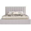 Ein besonderes Detail ist der schmale Rahmen in warmem Kaschmirgrau, der das Kopfteil elegant einfasst und die vertikale Struktur stilvoll betont. Die Kombination aus Chenille-Polsterung und dekorativer Umrahmung verleiht dem Bett zusätzliche Tiefe und modernen Charakter.