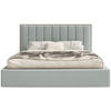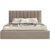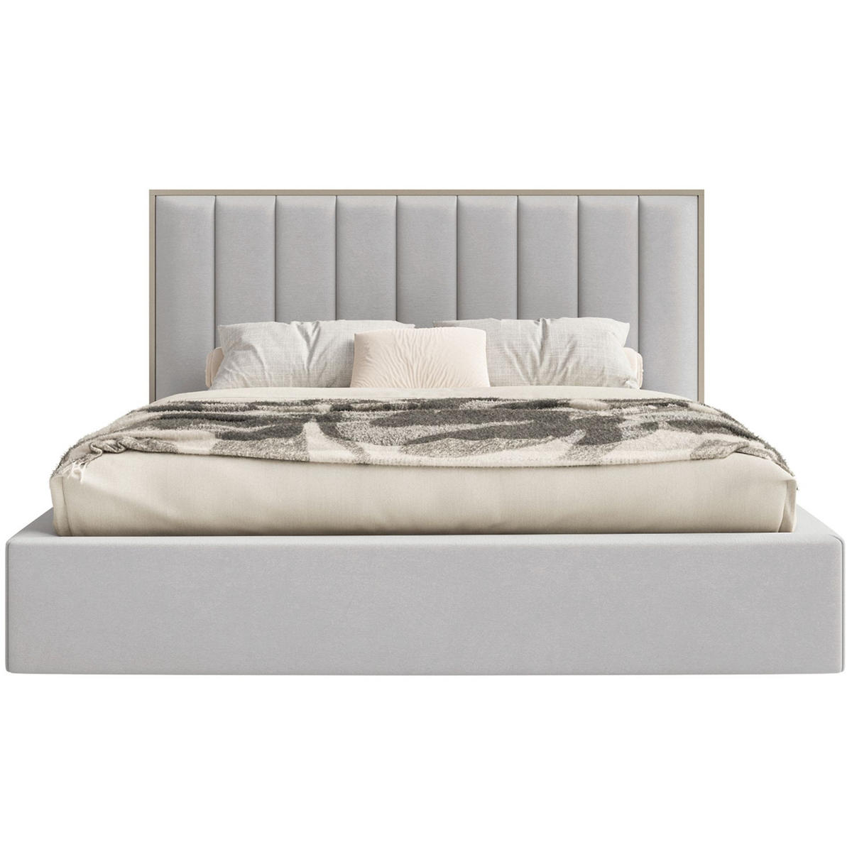 Ein besonderes Detail ist der schmale Rahmen in warmem Kaschmirgrau, der das Kopfteil elegant einfasst und die vertikale Struktur stilvoll betont. Die Kombination aus Polsterung und dekorativer Umrahmung verleiht dem Bett Tiefe und modernen Charakter.
