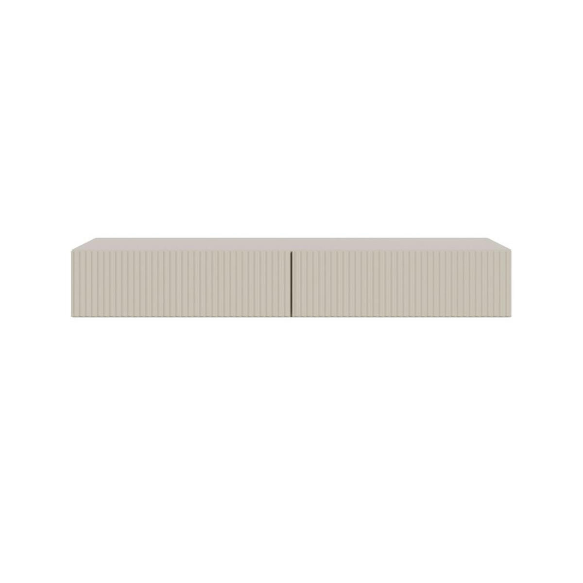 Der hängende TV-Schrank Veldio ist die perfekte Lösung für ein minimalistisches Wohnzimmer. Die hängende Konstruktion spart Platz und lässt den Raum größer wirken. Die geriffelten Fronten verleihen dem Schrank einen modernen und stilvollen Look. Geriffelte Fronten können auch einen praktischen Vorteil bieten: auf ihrer Oberfläche sind die lästigen Fingerabdrücke kaum sichtbar. Veldio verfügt über zwei geschlossene Fächer, die ideal für die Aufbewahrung von wichtigen Unterlagen, DVDs, Blu-rays oder anderen Medien sind. Die Türen lassen sich spielend leicht mit dem praktischen Push-to-Open System öffnen, so stören keine Türgriffe den minimalistischen, cleanen Look des Lowboards.