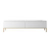 Der Bemmi TV-Schrank überzeugt mit zeitlosem Design und funktionalen Details. Die schmalen Metallfüße verleihen dem Möbelstück eine visuelle Leichtigkeit und fügen sich harmonisch in jeden Einrichtungsstil ein. Die großzügige Ablagefläche bietet ausreichend Platz für Ihren Fernseher und weitere Deko-Elemente.