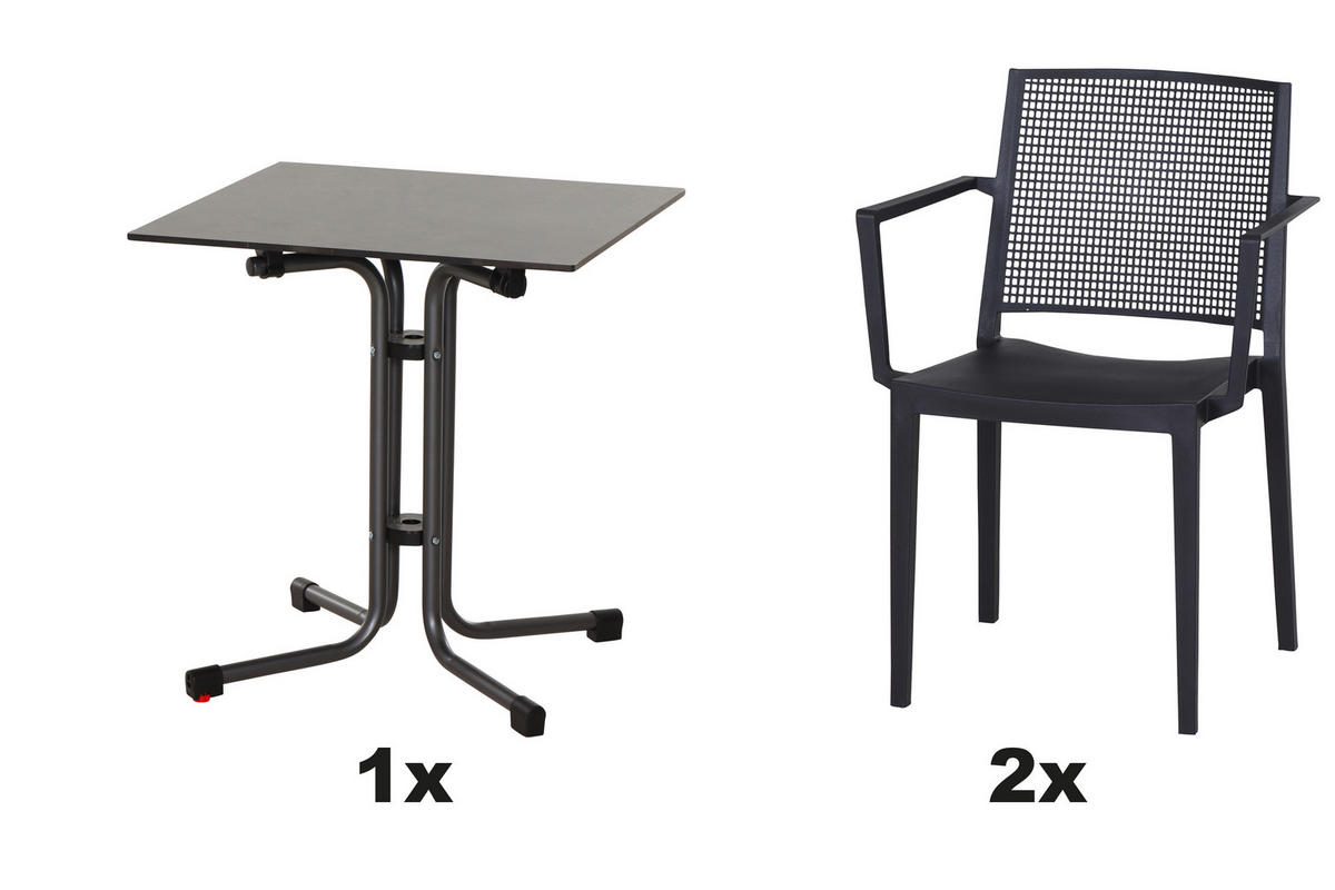 Gartengarnitur (3-teilig) in Anthrazit mit Tisch: modern-urbanes Outdoor-Set