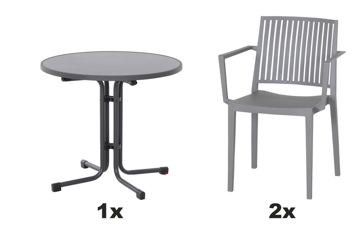 - Besonderheiten: Tisch klappbar, UV-beständig, wetterbeständig, Stühle stapelbar