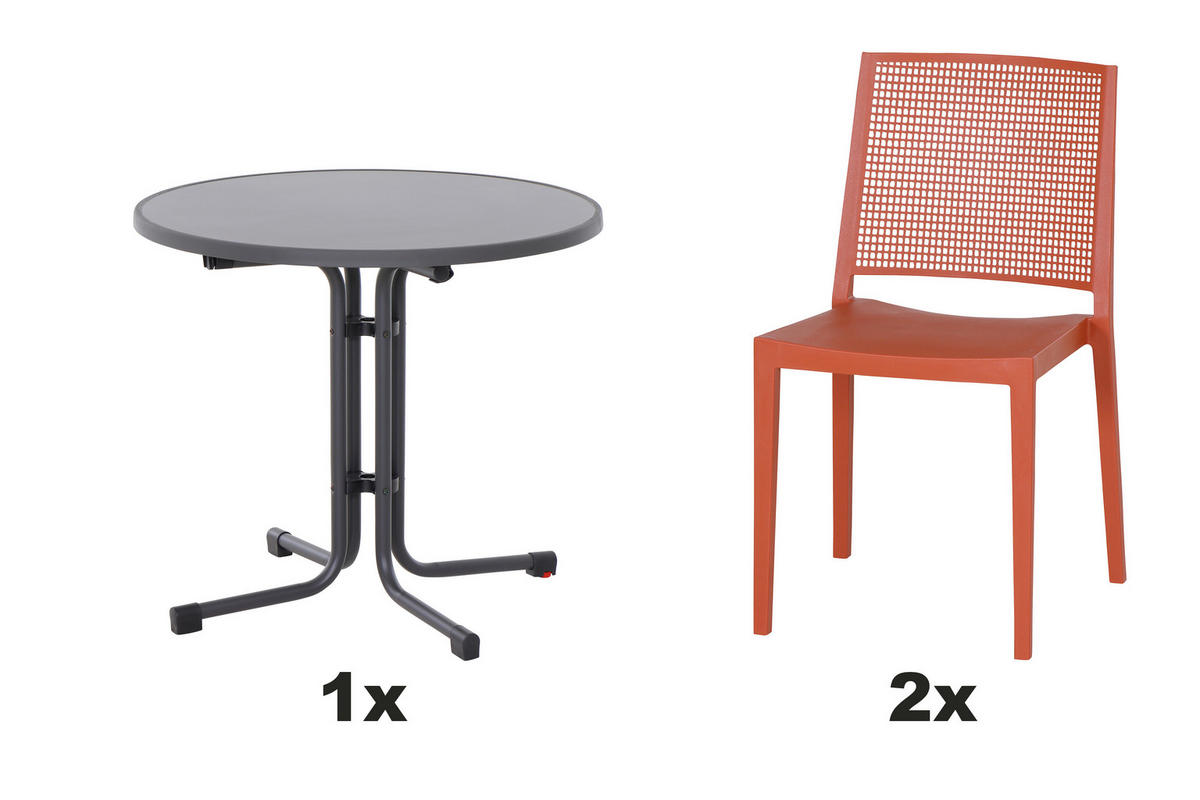 - Besonderheiten: Tisch klappbar, UV-beständig, wetterbeständig, Stühle stapelbar