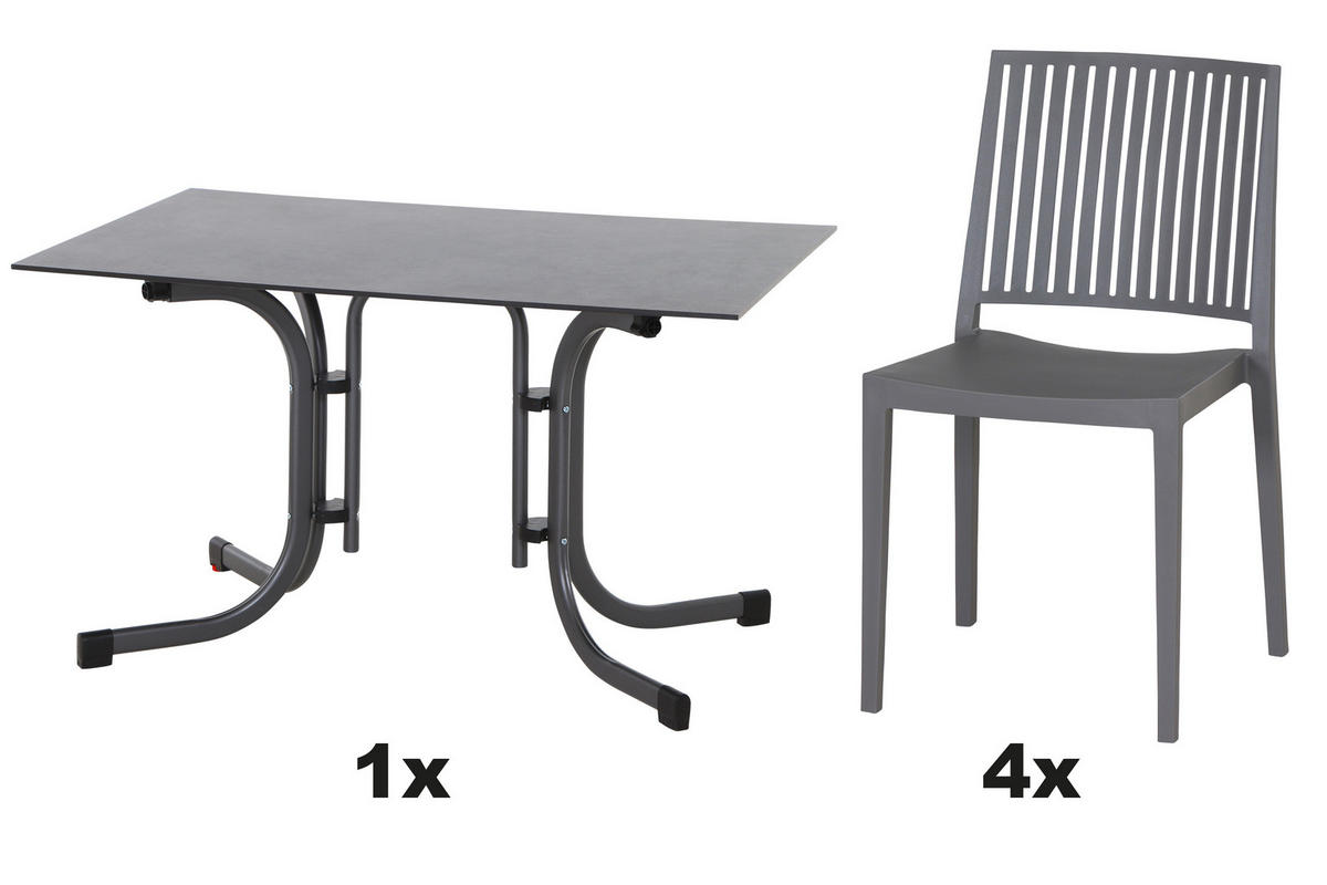 - Besonderheiten: Tisch klappbar, gastro- und objekttauglich, wetterbeständig, Stühle stapelbar