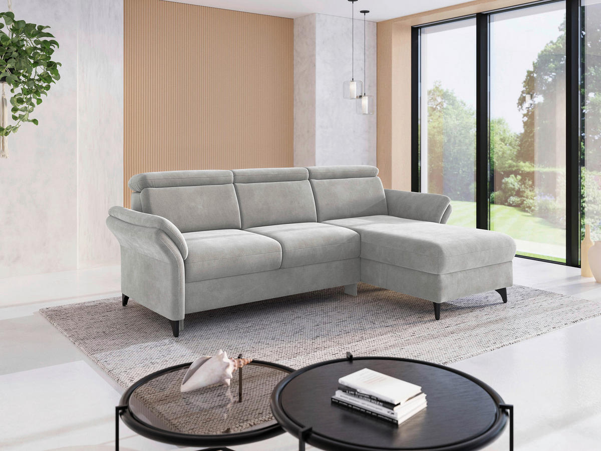 Sit & More ECKSOFA GLENDALE E in Flachgewebe Silberfarben 253/166 cm