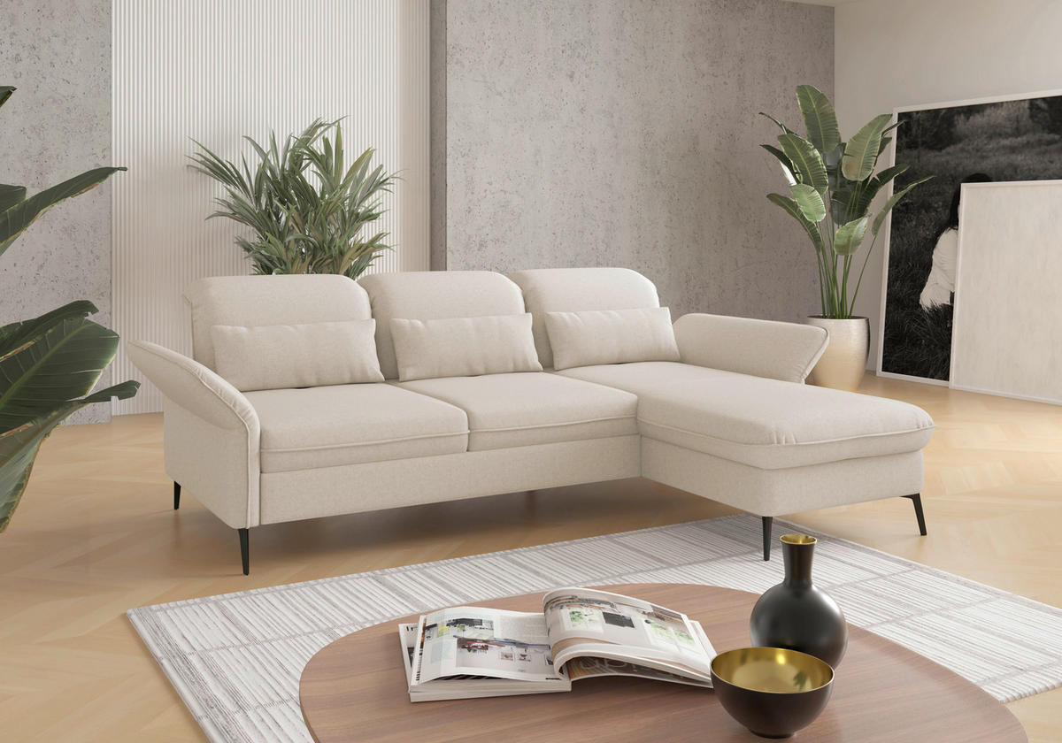 Ein It-Piece, das Ihren Erwartungen gerecht wird: Dieses cremefarbene Ecksofa von SIT & MORE mit Flachgewebe-Bezug tut einiges fürs individuelle Wohnglück!