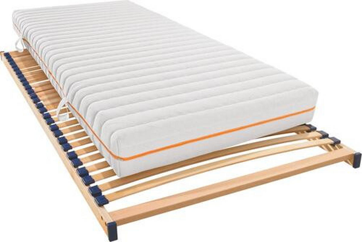 Lattenrost aus Holz mit 28 Leisten, davon 14 in Duokappen zur ausgleichenden Federung, ist im Lieferumfang inbegriffen und punktet mit einer individuellen Liegehärteeinstellung für die bedarfsgerechte Abstimmung auf Körpergewicht plus Schlafgewohnheiten.