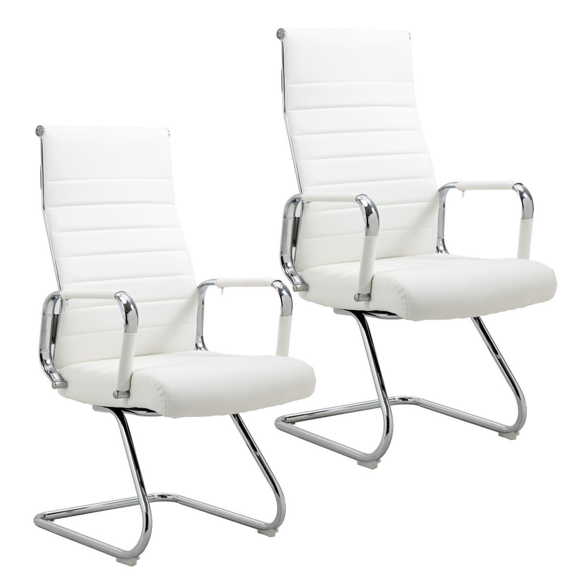 SVITA OFFICE COMFORT Besucherstuhl als Schwingstuhl mit Armlehne in Weiß- Freischwingender Armlehnstuhl in zeitlosem Design im 2er Set - Gesamtmaße: ca. 56,5 x 64 x 110 cm (BxTxH) –