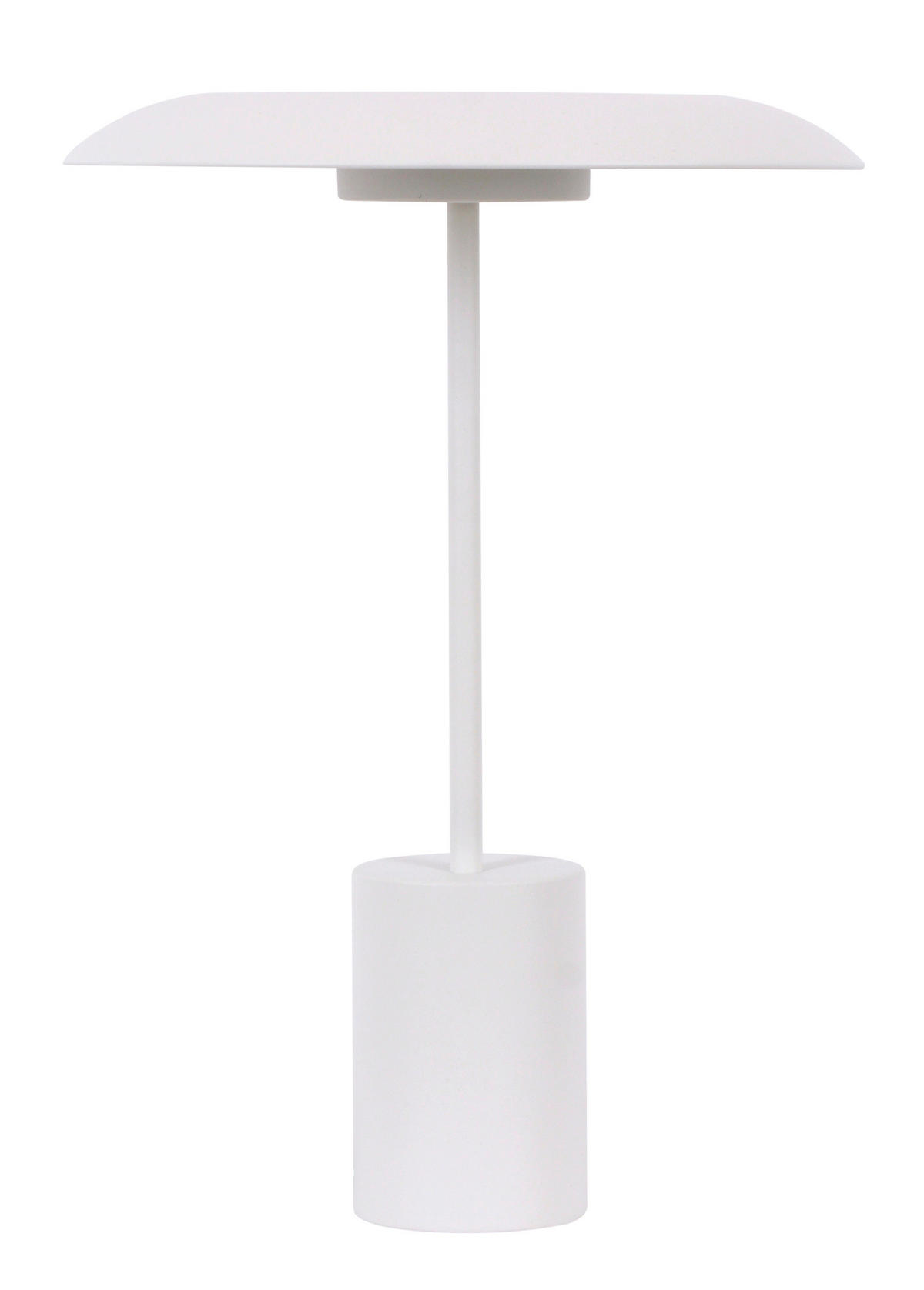 Bei dieser Tischleuchte aus Metall in Weiß treffen Lights von gestern auf den Stil von morgen. Die puristisch-futuristischen Konturen sind auf das Wesentliche reduziert und nicht nur die Optik des abgeflachten Aluminium-Schirms ist spacig, sondern gleichfalls die technische Ausstattung mit LEDs und USB-Smartphone-Ladeanschluss.