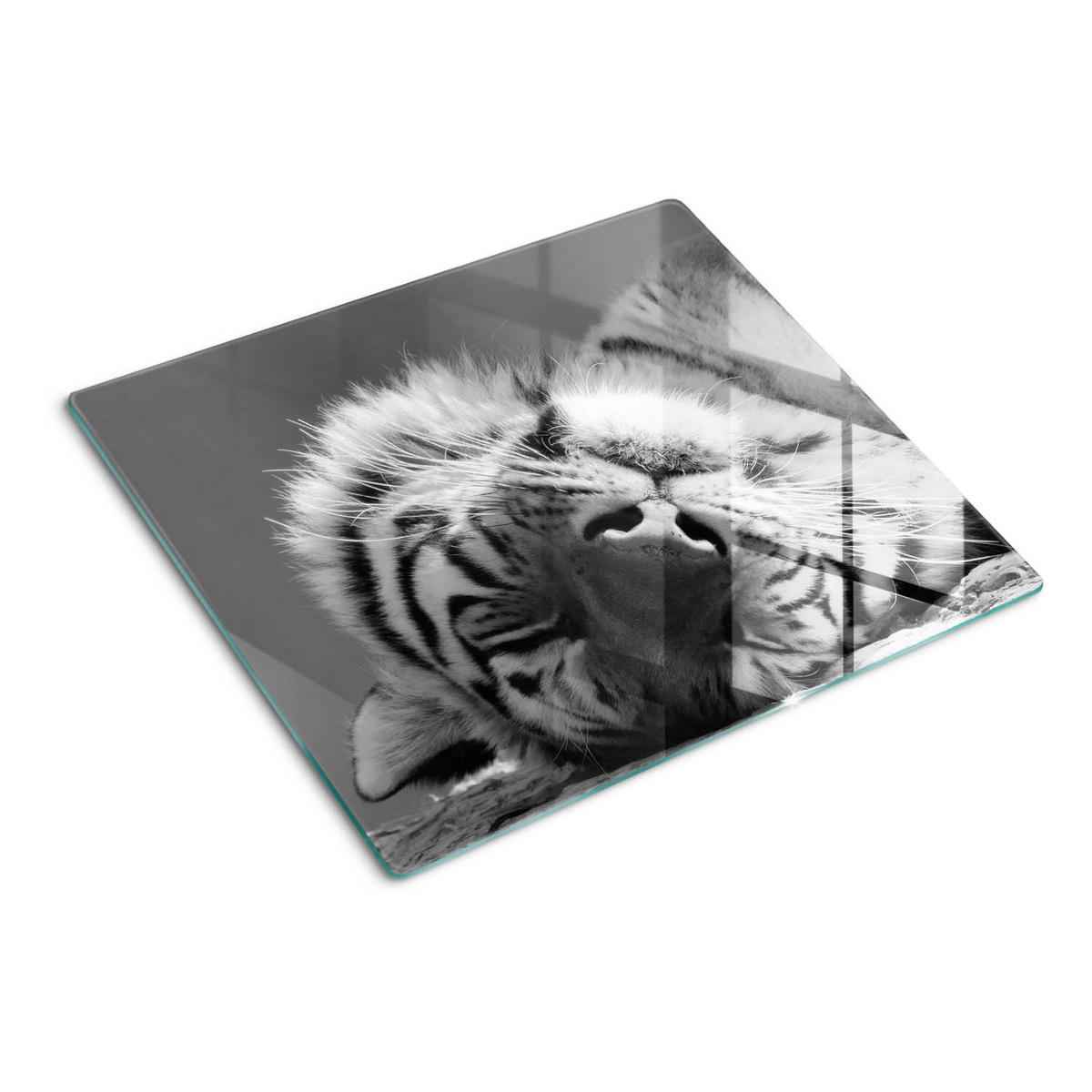 GLASPLATTE 60x52 cm Schlafender Tiger - Hellgrau, Glas (60/52cm) - TULUP