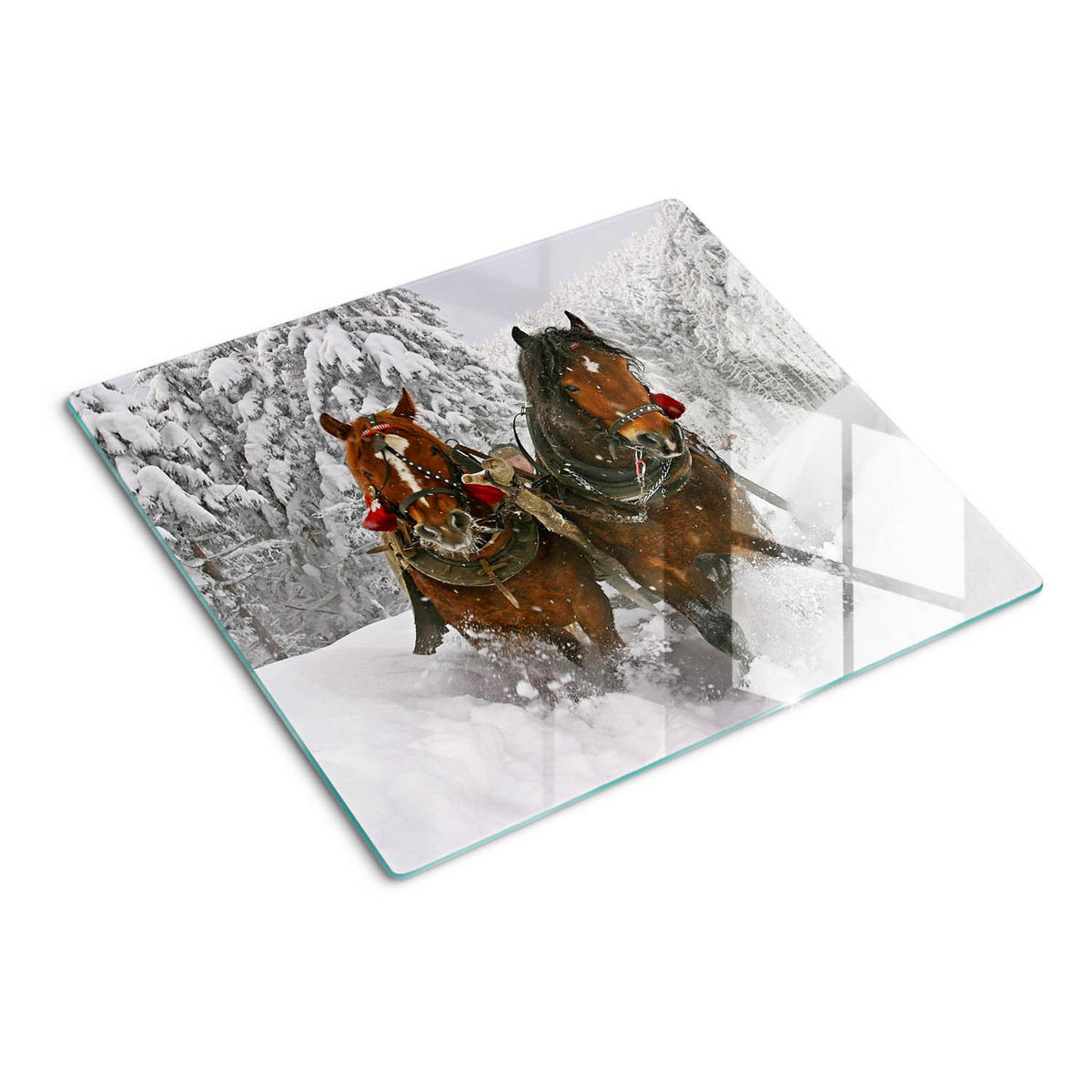 TULUP GLASPLATTE 60x52 cm Schlittenfahrt