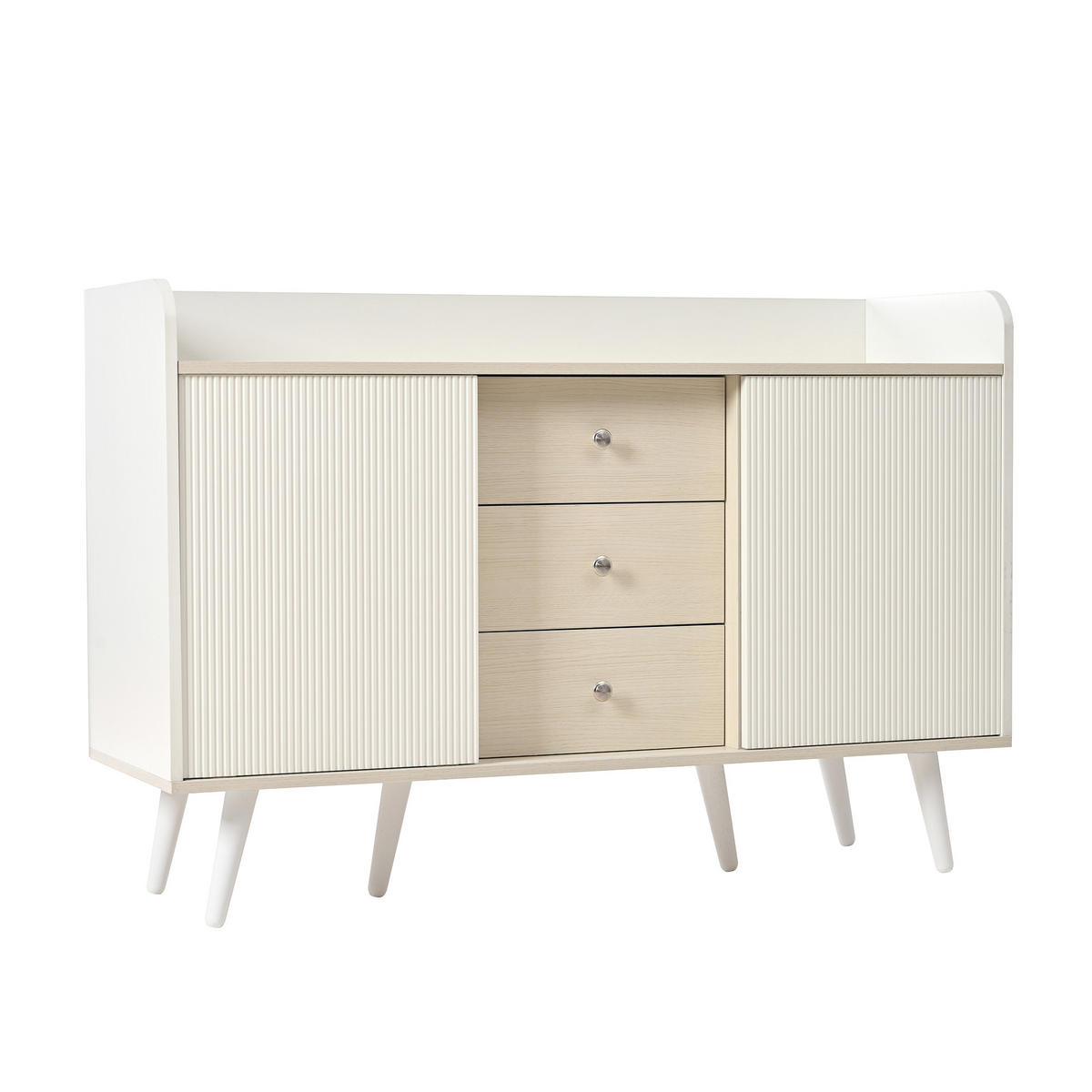 Urban Meuble SIDEBOARD mit Schiebetüren & 3 Schubladen, Weiß und Holzoptik