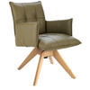 ARMLEHNSTUHL  Beinauswahl, Lederauswahl, Stoffauswahl, Sitzfläche 360° drehbar  Echtleder  - Eichefarben/Olivgrün, Design, Leder/Holz (86/57/65cm) - Valnatura