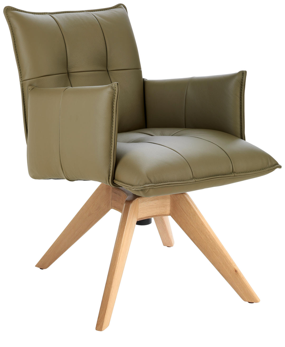 ARMLEHNSTUHL  Beinauswahl, Lederauswahl, Stoffauswahl, Sitzfläche 360° drehbar  Echtleder  - Eichefarben/Olivgrün, Design, Leder/Holz (86/57/65cm) - ValnaturaValnatura