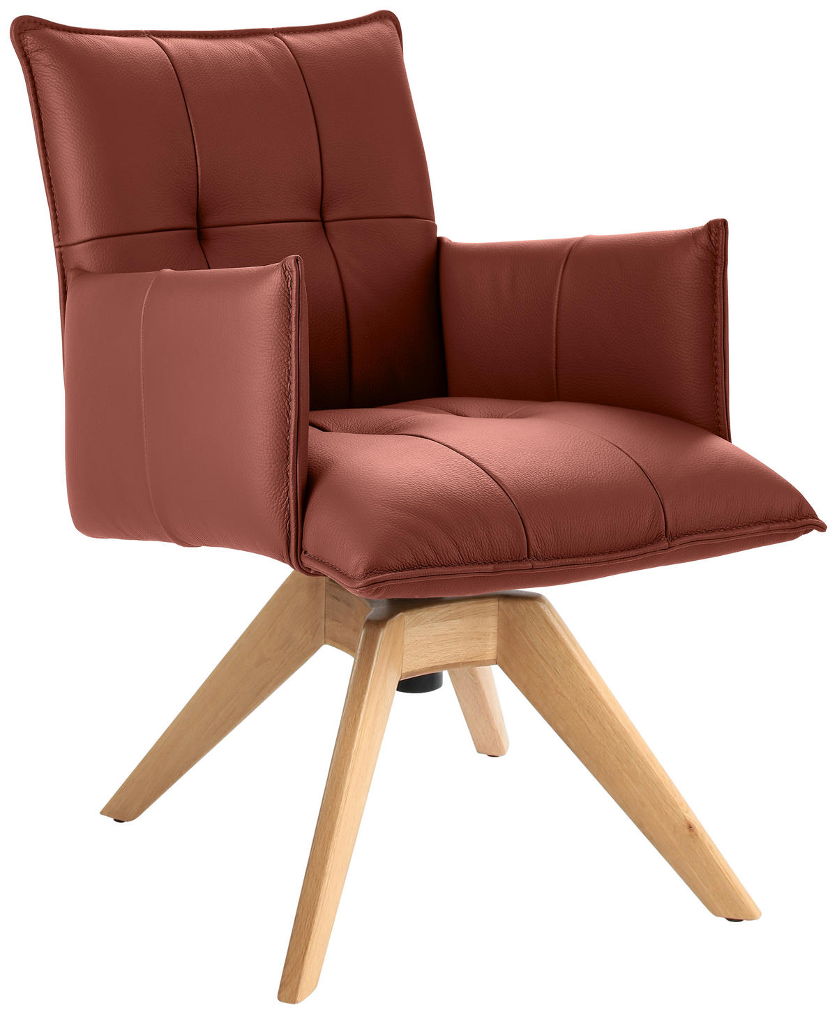ARMLEHNSTUHL  Beinauswahl, Lederauswahl, Stoffauswahl, Sitzfläche 360° drehbar  Echtleder  - Eichefarben/Terracotta, Design, Leder/Holz (86/57/65cm) - Valnatura