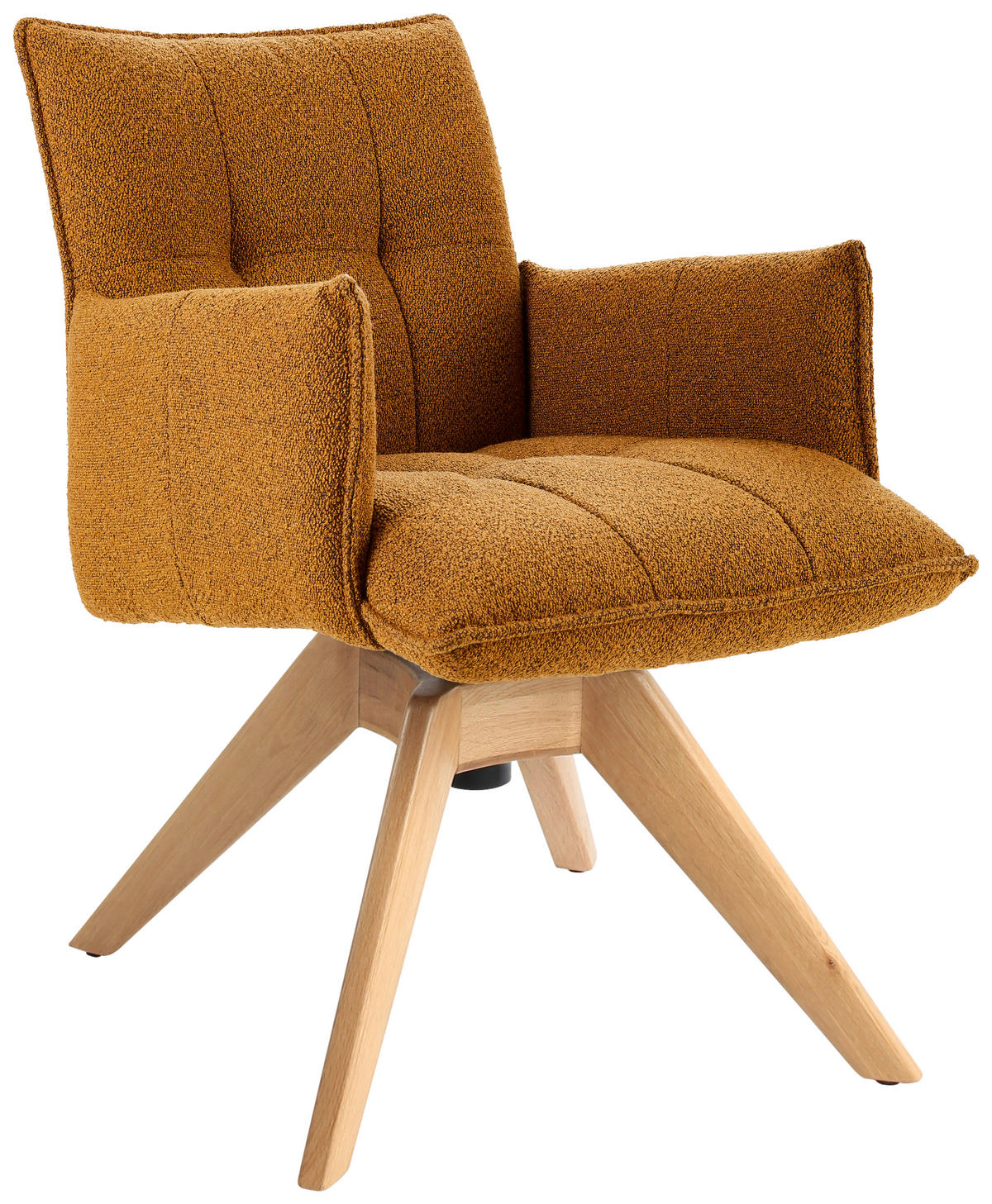 ARMLEHNSTUHL  Beinauswahl, Lederauswahl, Stoffauswahl, Sitzfläche 360° drehbar Webstoff  - Eichefarben/Bernsteinfarben, Design, Holz/Textil (57/86/65cm) - Valnatura