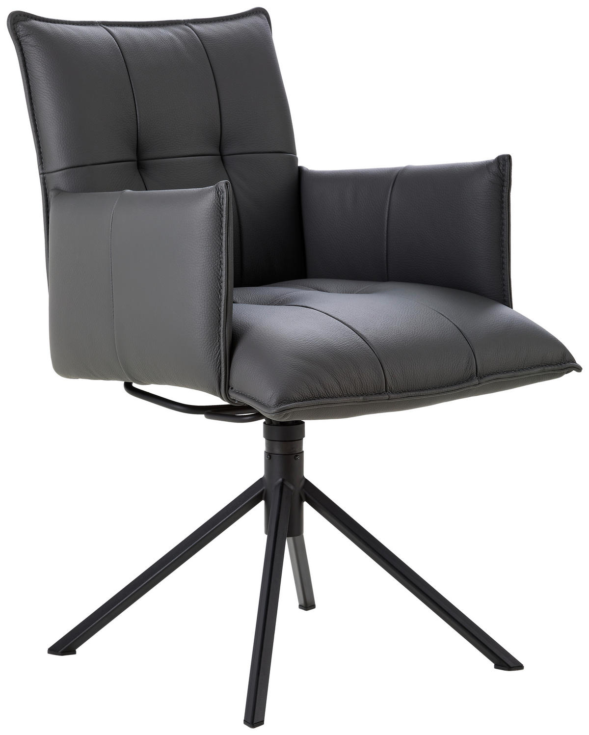 ARMLEHNSTUHL  Lederauswahl, Sitzfläche 360° drehbar  Echtleder  - Anthrazit/Schwarz, Design, Leder/Metall (55/85/65cm) - Valnatura