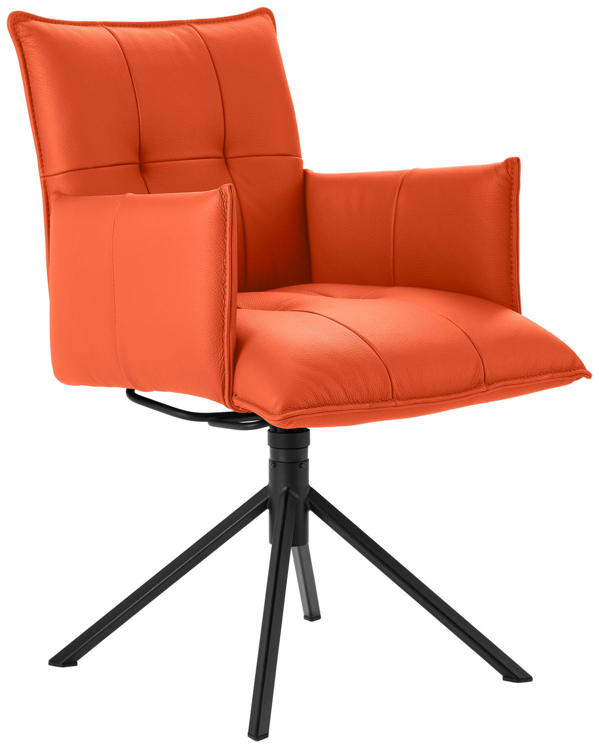 ARMLEHNSTUHL  Lederauswahl, Stoffauswahl, Sitzfläche 360° drehbar  Echtleder  - Schwarz/Orange, Design, Leder/Metall (55/85/65cm) - ValnaturaValnatura