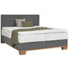Ziersteppung. Mit den hohen, eckigen Füßen ist ein sicherer Stand gegeben und das Design wird adäquat vervollständigt. Ihr neues Boxspringbett (ca. 160 x 200 cm) in Eichefarben sowie Grau mit Matratze, Topper und gepolstertem Kopfteil verführt dazu, behaglich die verdiente Nachtruhe zu genießen!