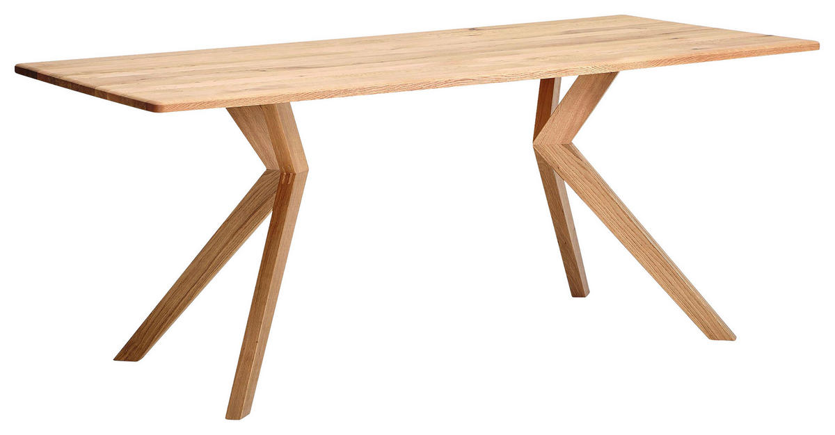 Dieser Esstisch (ca. 200 x 100 cm) aus Asteiche massiv setzt auf natürliches Material. Ausgestellte Beine mit pfiffigem Knick bilden die Basis und tragen die großzügige Tischplatte. Das Möbel ist aus massivem, geöltem Asteichenholz gefertigt und kommt in Ihrer Wohnung bestens zur Geltung.