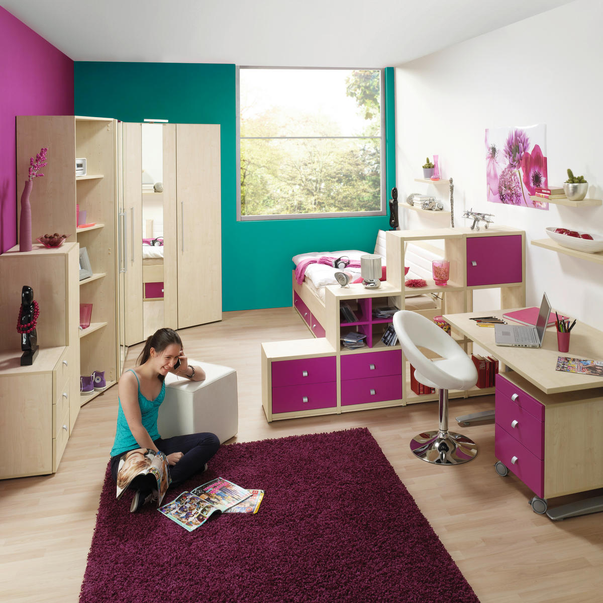 Dieses schöne Jugendzimmer kombiniert ausgereifte Funktionalität mit einem ansprechenden Design. Die Kombination ist äußerst stimmig und bis ins kleinste Detail aufeinander abgestimmt. Die Möbel sind aus hochwertiger Flachpressplatte gefertigt und überzeugen durch eine exzellente Verarbeitung. Ein Schreibtisch bietet ausreichend Platz für Computer, Hefte sowie andere Büroutensilien. Zahlreiche Regale und Schränke sowie verstellbare Einlegeböden schaffen zusätzlichen Stauraum für Bücher, Spiele oder CDs. Dank einer Vielzahl an unterschiedlichen Farben und Varianten können Sie sich bei uns ein Jugendzimmer ganz nach Ihrem Geschmack zusammenstellen. Egal ob Creme, Buchefarben, Grau oder Pinienfarben, dieses Jugendzimmer lässt in puncto Design keine Wünsche offen. Selbst bei der Glasart kann zwischen verschiedenen Oberflächen und Fassungen gewählt werden. Dieses wunderschöne Jugendzimmer lädt zum Wohlfühlen ein! Gerne planen unsere Fachberater Ihre individuelle Einrichtung aus verschiedenen Varianten, Farbalternativen und Ausführungen. Wir freuen uns auf Ihren Besuch!