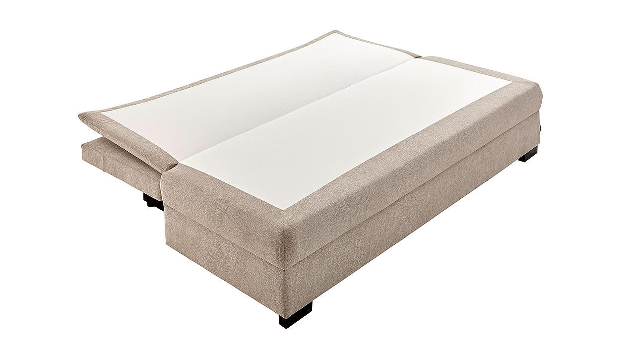 Die Schaumstoffpolsterung mit Nosagunterfederung unterstützt Sie beim Sitzen, Liegen und Relaxen. 2 Rücken- und Armlehnenkissen sorgen für zusätzlichen Komfort. Geht der Abend zur Neige, bauen Sie das Sofa mit Schlaffunktion per Hubmatik im Nu zu einer gemütlichen Schlafstätte für Übernachtungsgäste um. Im Stauraum bewahren Sie Kissen oder Bettwäsche auf. Lassen Sie sich von diesem Schlafsofa in Beige mit Bettkasten begeistern!