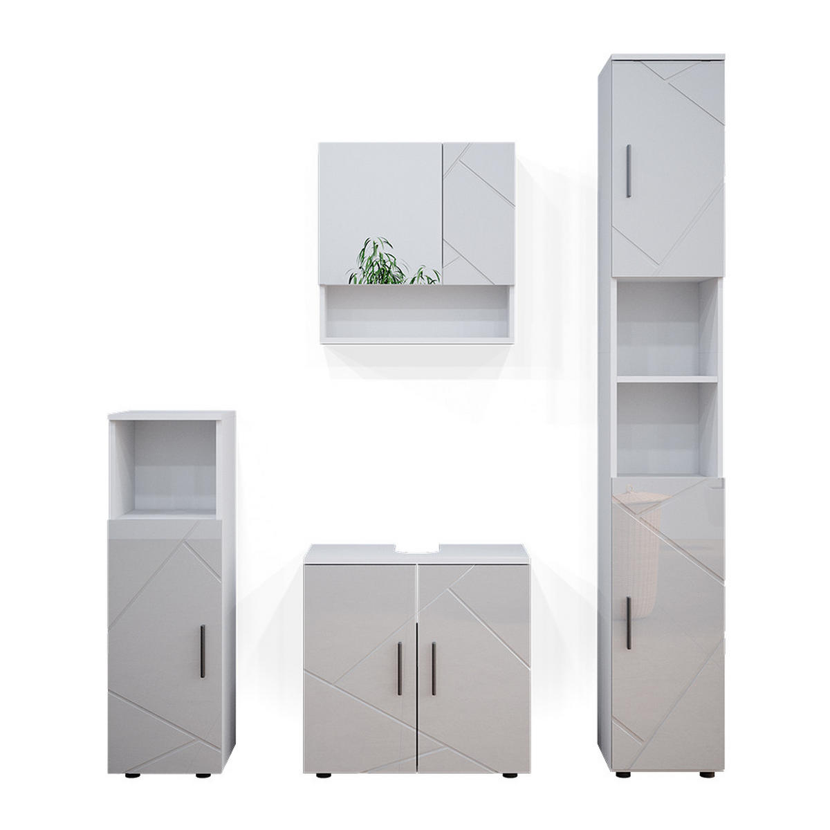 Das Badezimmerschrank-Set bietet vielfältige Kombinationsmöglichkeiten, ideal für eine stilvolle und funktionale Einrichtung.