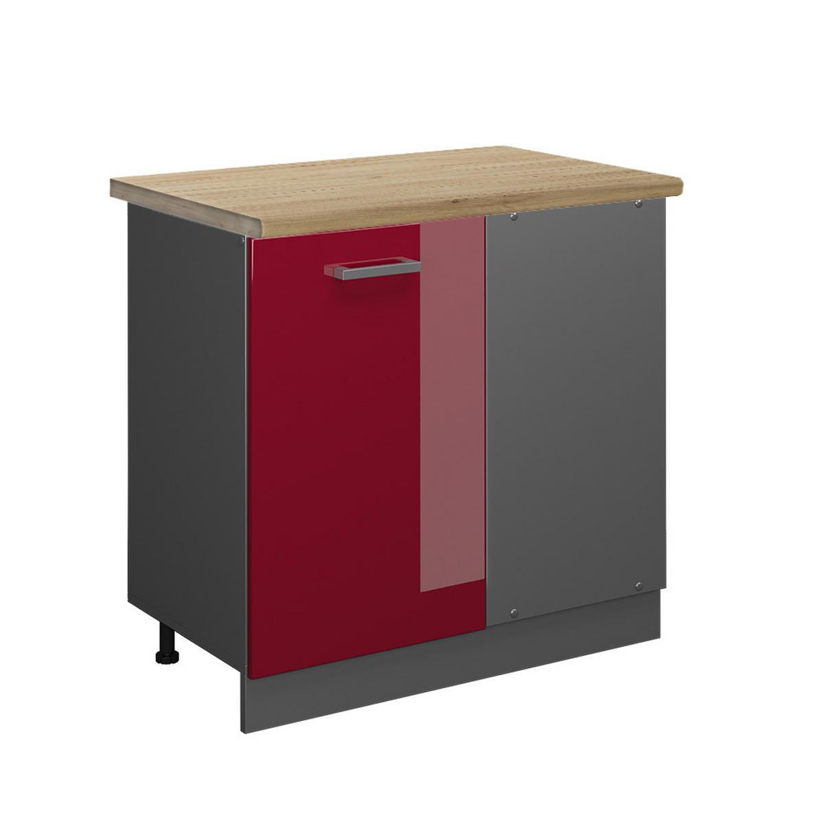 ECKUNTERSCHRANK R-Line Rot Hochglanz 86 cm , AP Eiche - Anthrazit/Rot, Holzwerkstoff (86/81.6/60cm) - ViccoVicco