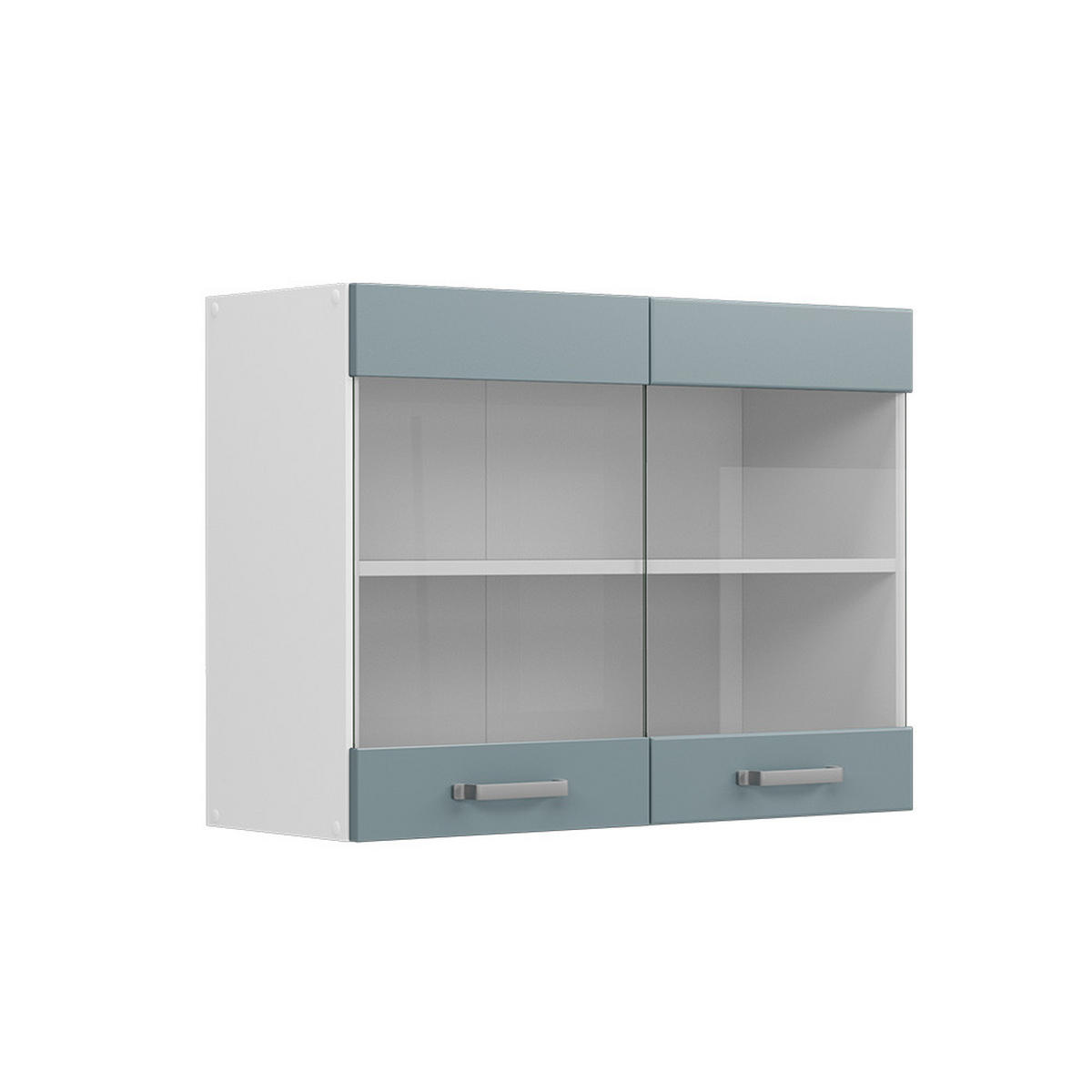 BLICKFANG IN DER KÜCHE: Der Hängeglasschrank mit zwei Türen setzt stilvolle Akzente. Hinter den Glaselementen entsteht praktischer Stauraum für Gläser, Geschirr oder Dekoration.