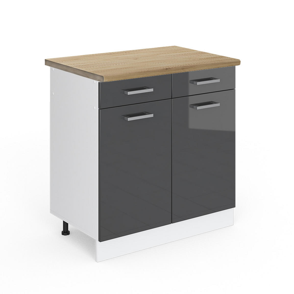 KÜCHENUNTERSCHRANK R-Line Anthrazit Hochglanz 80 cm , AP Eiche - Schwarz Hochglanz/Anthrazit, Holzwerkstoff (80/81.6/60cm) - Vicco