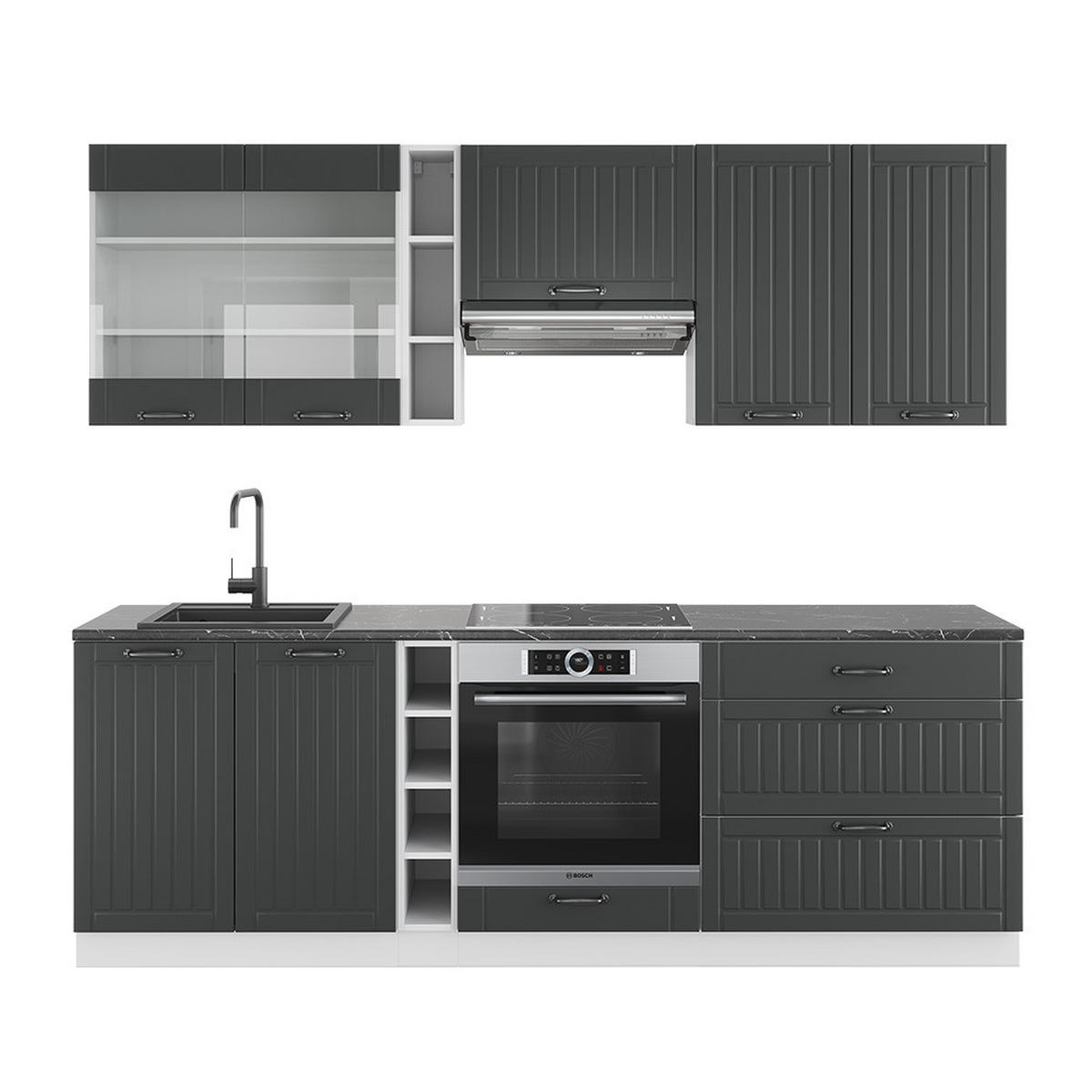 LIEFERUMFANG: Küchenblock mit Arbeitsplatte, Montagematerial, Montageanleitung (Sofern nicht anders angegeben, gehören Elektrogeräte und Dekorationen nicht zum Lieferumfang)