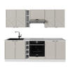 MATERIAL: Die Küchenzeile besteht aus pflegeleichter, melaminharzbeschichteter 16 mm Spanplatte. Alle Fronten der Kücheneinheiten sind aus hochwertigem MDF hergestellt.