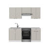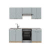 Der Küchenblock bietet die Möglichkeit, zusätzliche Module hinzuzufügen und nach Belieben umzustellen. Die MDF-Fronten verleihen dem Produkt ein modernes und ansprechendes Design.