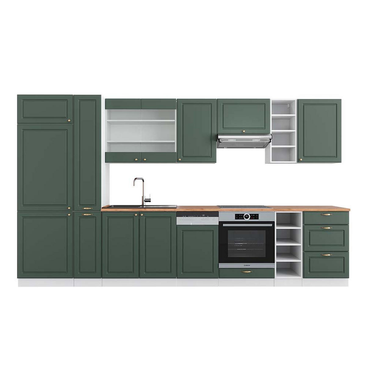 Vicco KÜCHENZEILE Fame-Line Grün-Gold Landhaus/Weiß 355 cm , AP Eiche