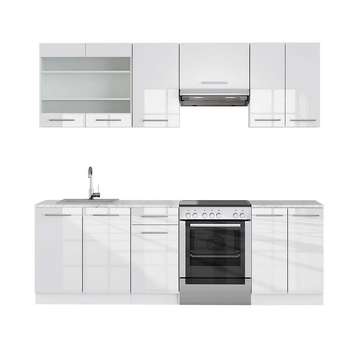 KÜCHENZEILE Fame-Line Weiß Hochglanz/Weiß 240 cm , AP Marmor - Weiß Hochglanz/Weiß, Holzwerkstoff (240/81.6/60cm) - Vicco