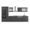 MAßE: Das Küchenmöbel hat eine Breite von 350 cm, eine Höhe von 206,8 cm und eine Tiefe von 60 cm. Die Unterschränke haben eine Tiefe von 46 cm.