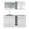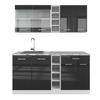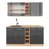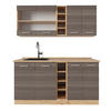Die Single-Küchenzeile ist modular anpassbar und bietet die Möglichkeit, zusätzliche Module zu beziehen. Zudem sind die Füße höhenverstellbar.