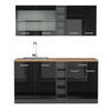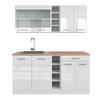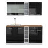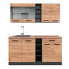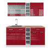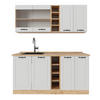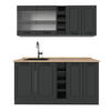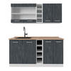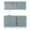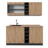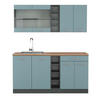 Die Küchenzeile ist modular anpassbar und bietet die Möglichkeit, zusätzliche Module zu beziehen. Zudem sind die Füße höhenverstellbar.