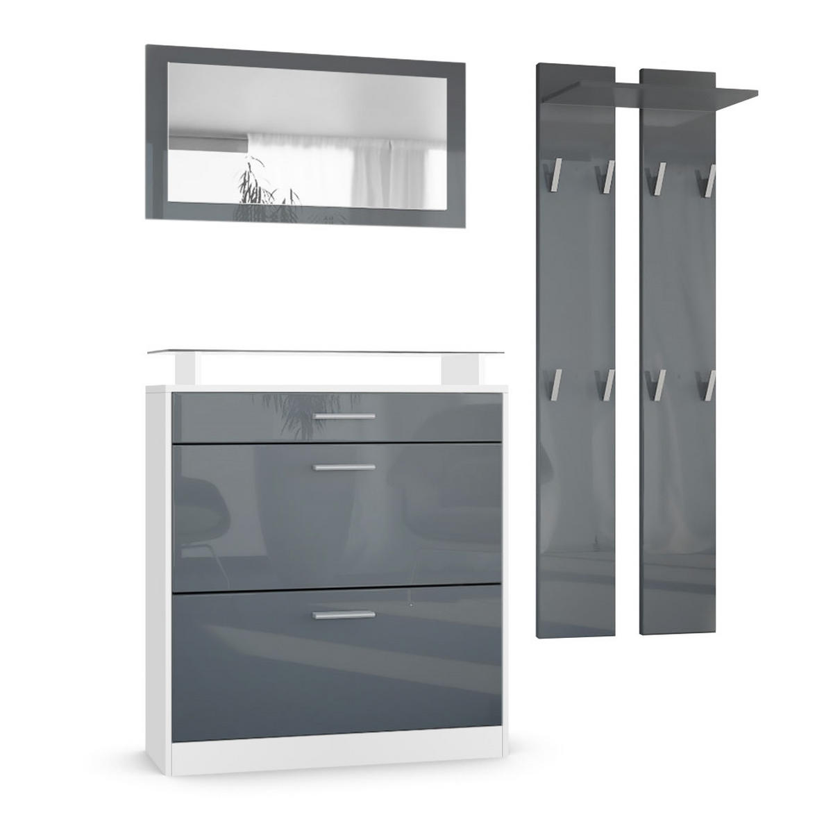 Stauraum: Das moderne Garderobenset für den Flur ist ein wahres Platzwunder - 1 Schuhschrank, 2 Garderobenpaneele mit Ablage und 1 Wandspiegel bieten viel Stauraum für allerlei Gegenstände im Flur, wie z.B. für Schuhe, Jacken und Accessoires.